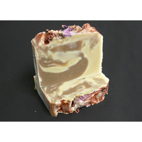 Ingredients: Olive Oil, Sustainable Palm Oil, and Coconut Oil. Essential oils of Ylang Ylang, Patchouli, Australian Orange. Australian Sandalwood Powder, Golden Yellow Clay, Native Mint, Rose petals, Calandula Petals.